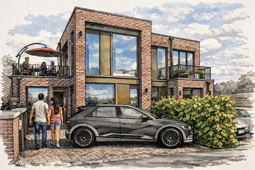 With that in mind, we have been developing a series of prototype back-to-back housing solutions. These homes comply with the Nationally Described Space Standards, are highly insulated, and incorporate sustainability measures such as photovoltaic panels, battery storage, and air source heat pumps. Depending on the site, they can include a small front garden and dedicated parking, along with integrated EV charging, provision for bins, bikes and plant enclosures.