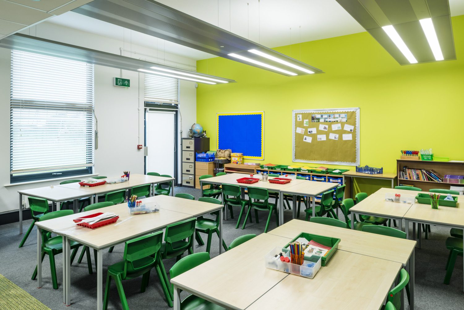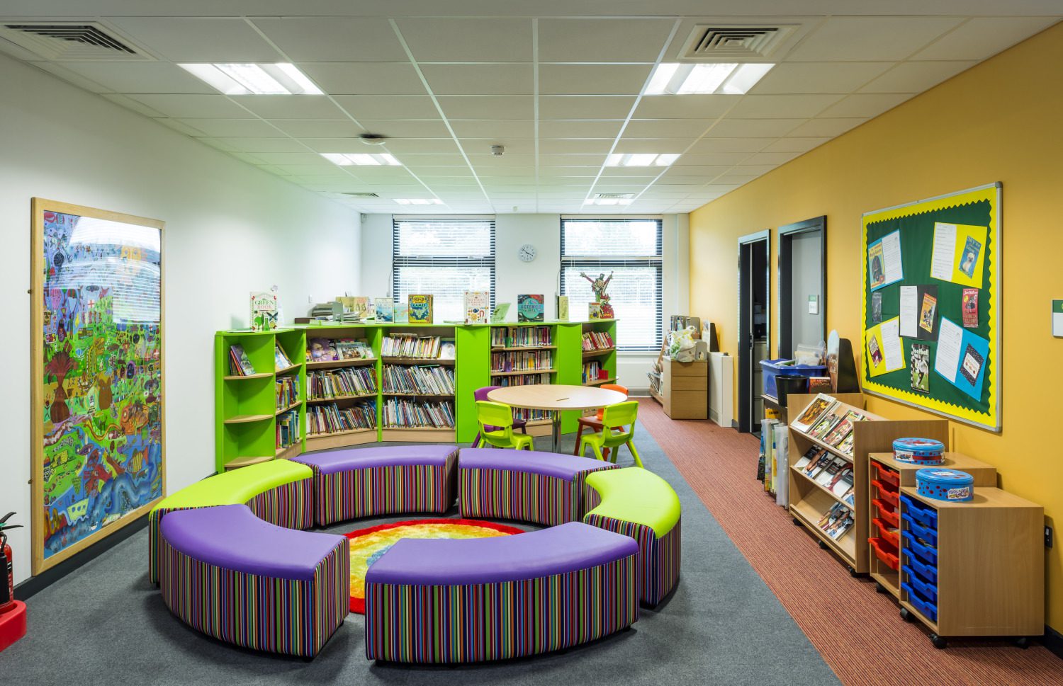 The bright and vivid interiors were developed with the Head Teacher to give a clear interiors brand throughout the school, inline with its new improving educational direction. The scheme is loved by the pupils who have given their seal of approval, as reflected in the creative poems they composed and presented at the opening ceremony.
