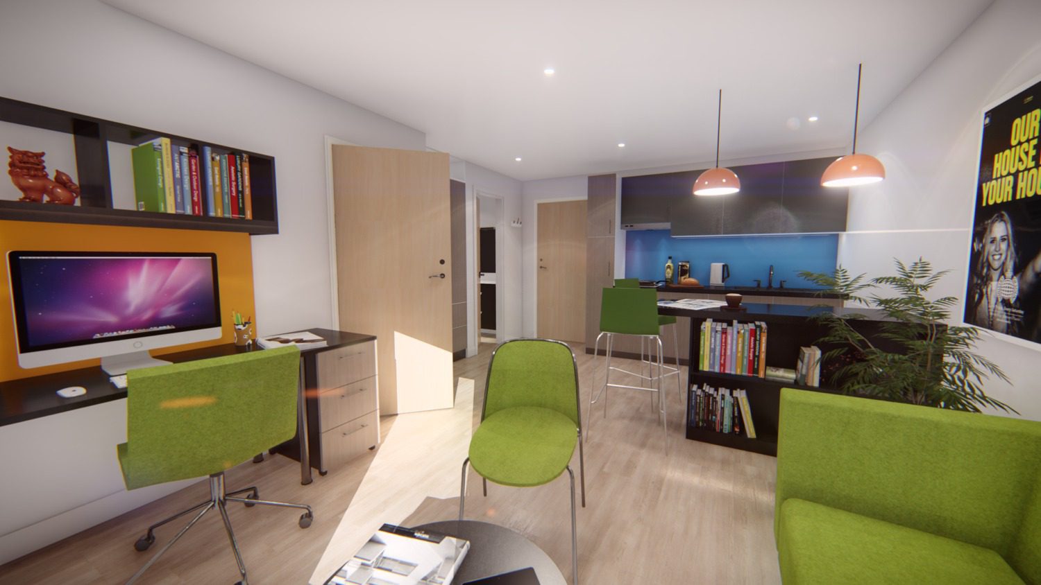 The residential accommodation is a blend of cluster, studio and 1 bed apartments, including a mix of standard, premium and shared ensuite rooms. These are provided in eight residential buildings which cascade in height from 16 to 5 storeys.
