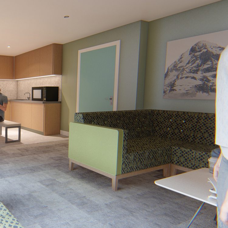 A landscape strategy has been developed creating two distinct courtyard spaces which will provide places for students to relax and socialise. The social courtyard has been developed as an extension of the communal dining area provided within the building, whilst the quiet courtyard relates to the new study rooms. A strong focus on biodiverse native planting flows throughout the scheme.