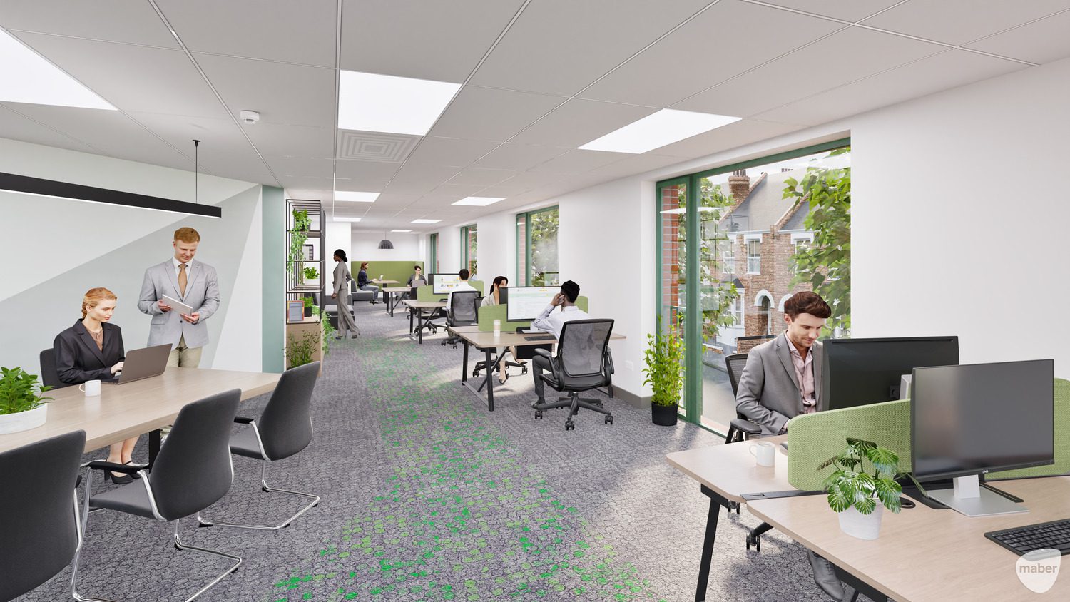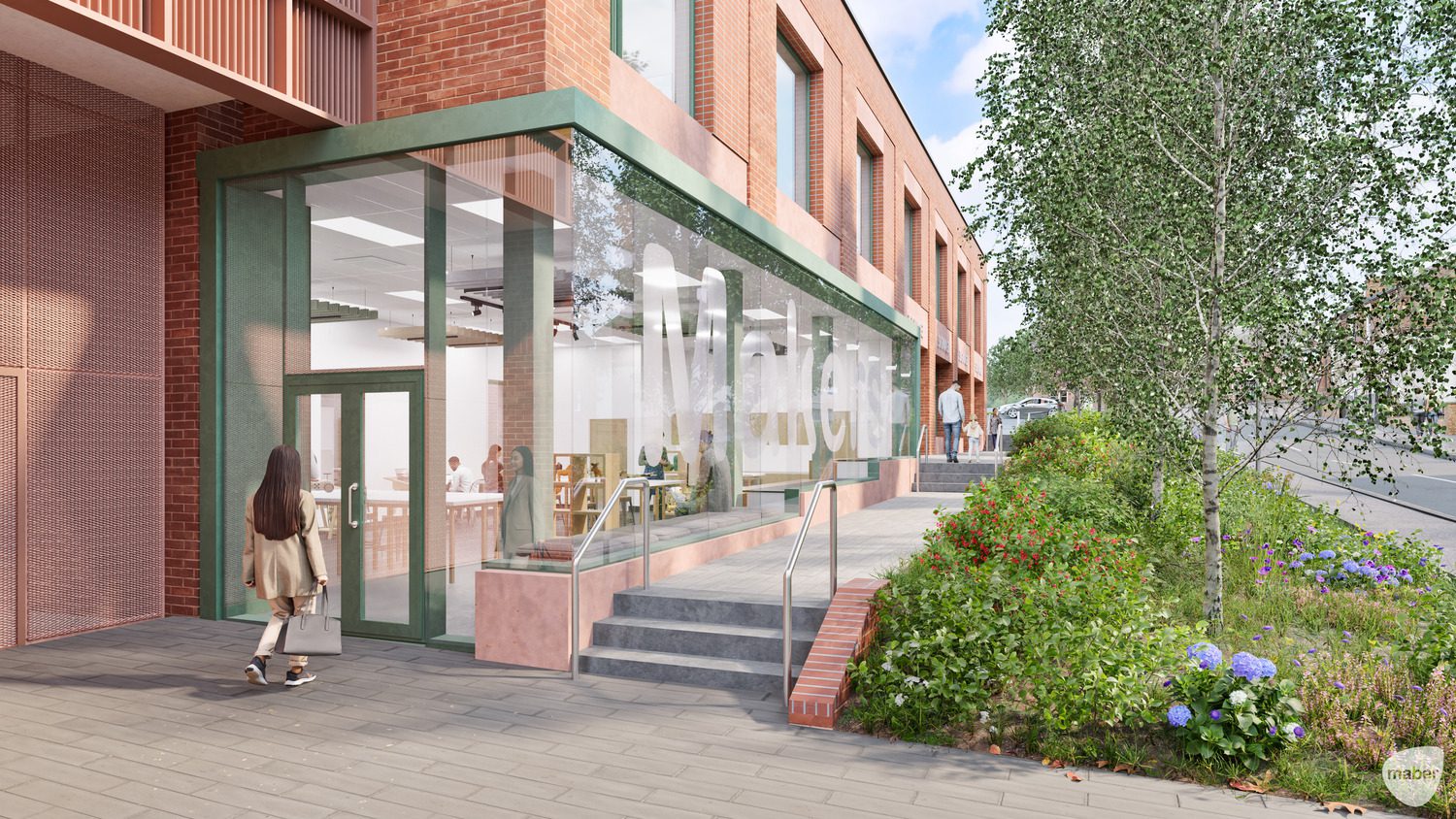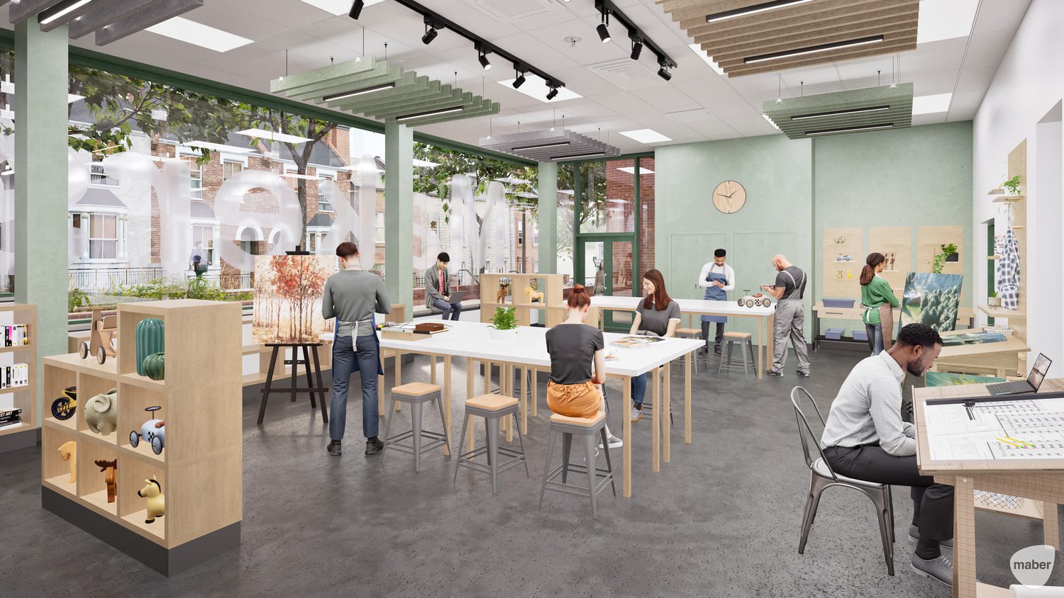 A central feature of the project is the Makers’ Space, a communal facility for specialist craftspeople and artists. Designed to foster creativity and innovation, this space takes the form of a glazed box that captures the attention of passersby, enhancing the building’s presence and setting the tone for the enterprise hub.